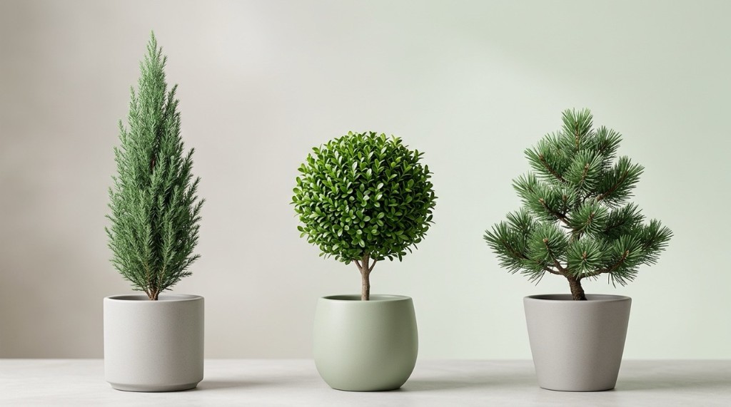 Iglaste: Tuje, jałowce, sosny, świerki (idealne na żywopłoty i całoroczne dekoracje).