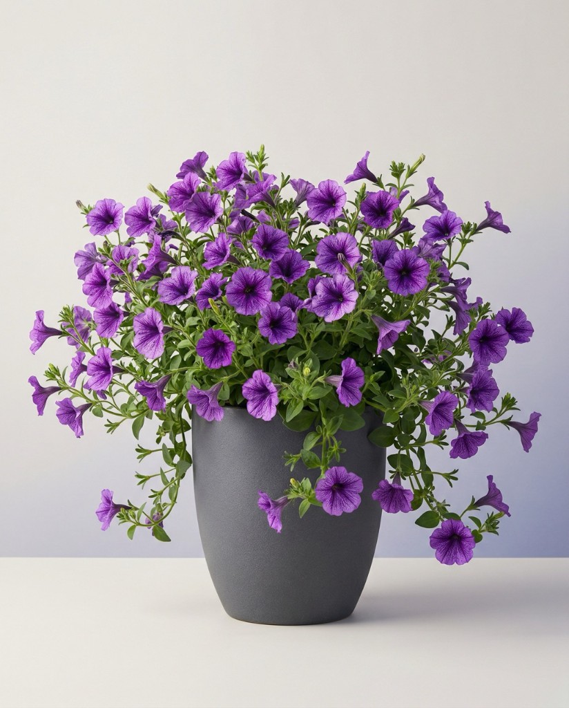 Zwieszające się kaskady kwiatów — idealne do donic i wiszących skrzynek. Surfinie lubią słońce i regularne nawożenie.